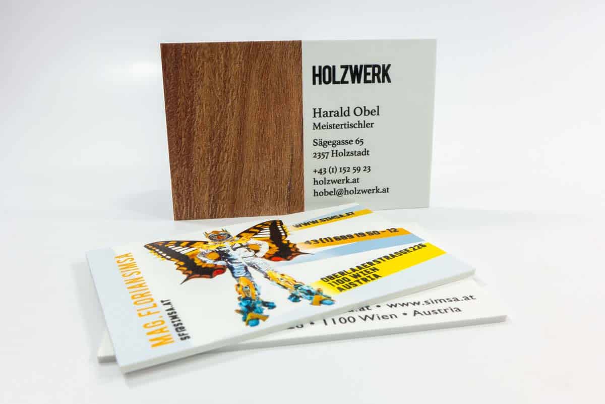 - Premium-Visitenkarten aus dicker Pappe bis zu 2mm Stärke (schwarz, weiß, bunt)