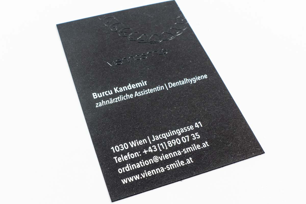 - Premium Visitenkarten mit UV-Glanzlackeffekten und Relieflack, auch auf ungestrichenem Naturkarton!