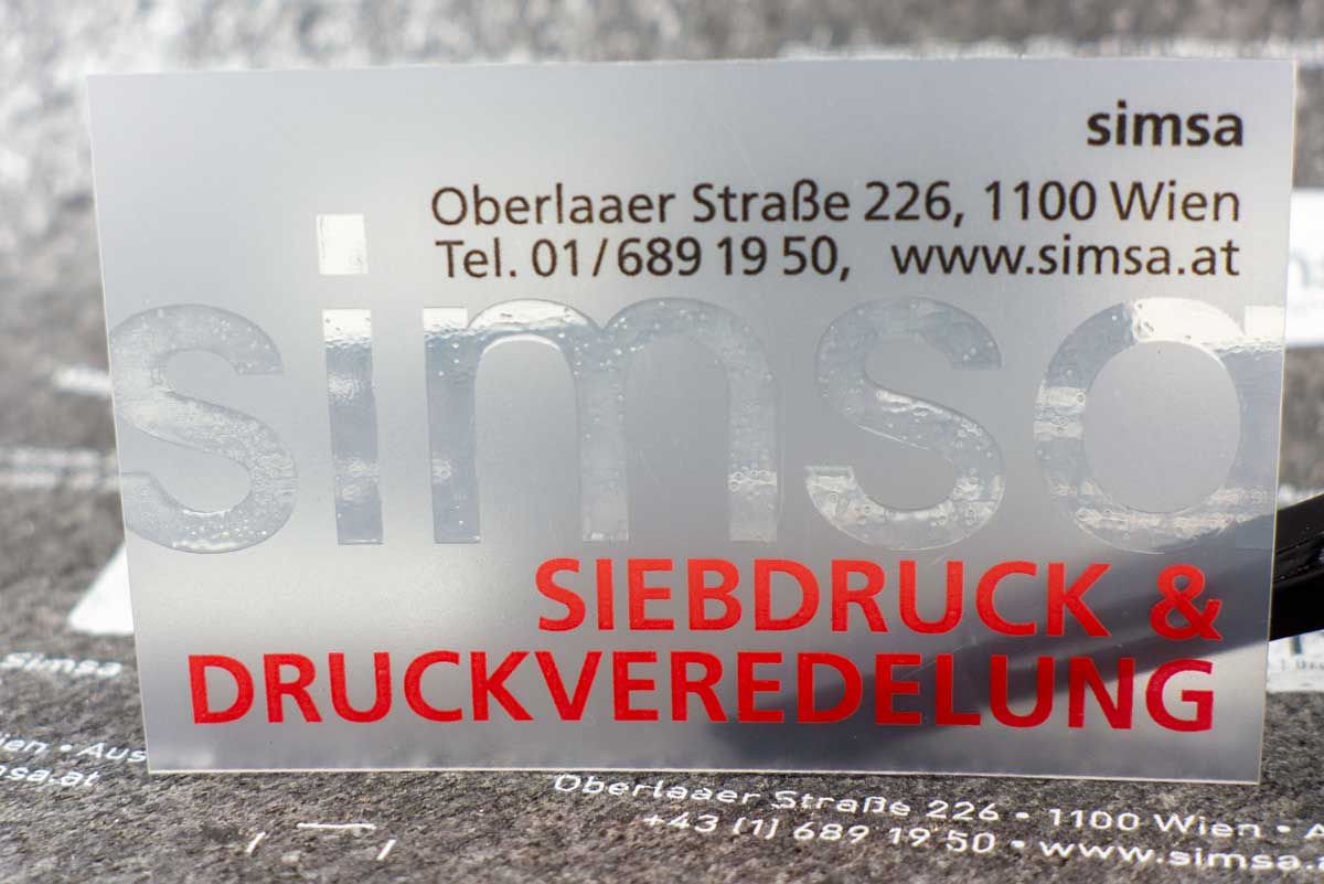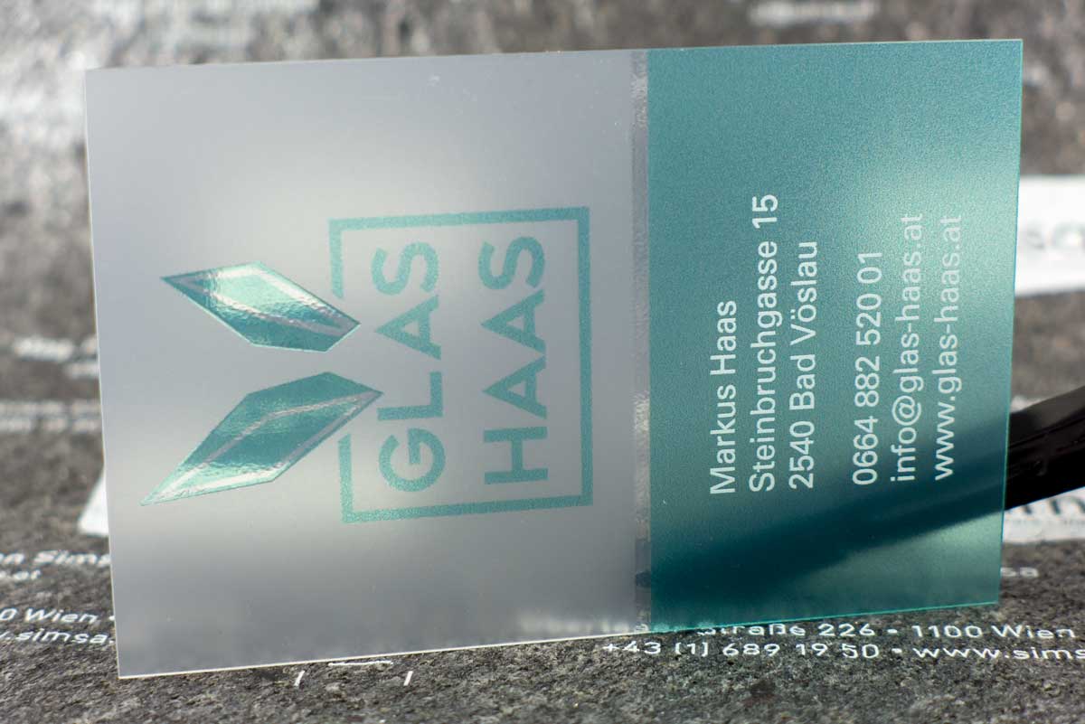 - Premium-Visitenkarten aus transparenten Folien, glasklar oder matt