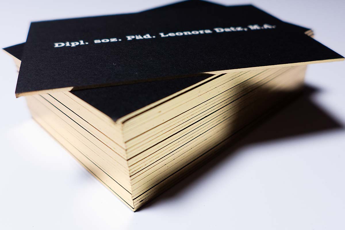 - Premium-Visitenkarten mit bunter Farbschnitt-Kante, Goldschnitt-Kante oder Silberschnitt-Kante