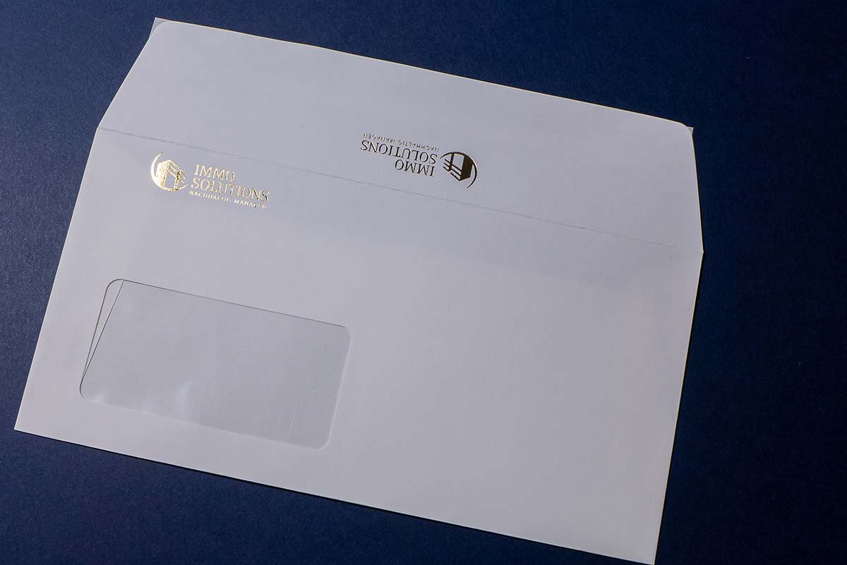 Besonders effektvoll bei den Geschäftsdrucksorten sind hier Kuverts und Briefpapier mit einer Goldprägung oder Silberprägung.
