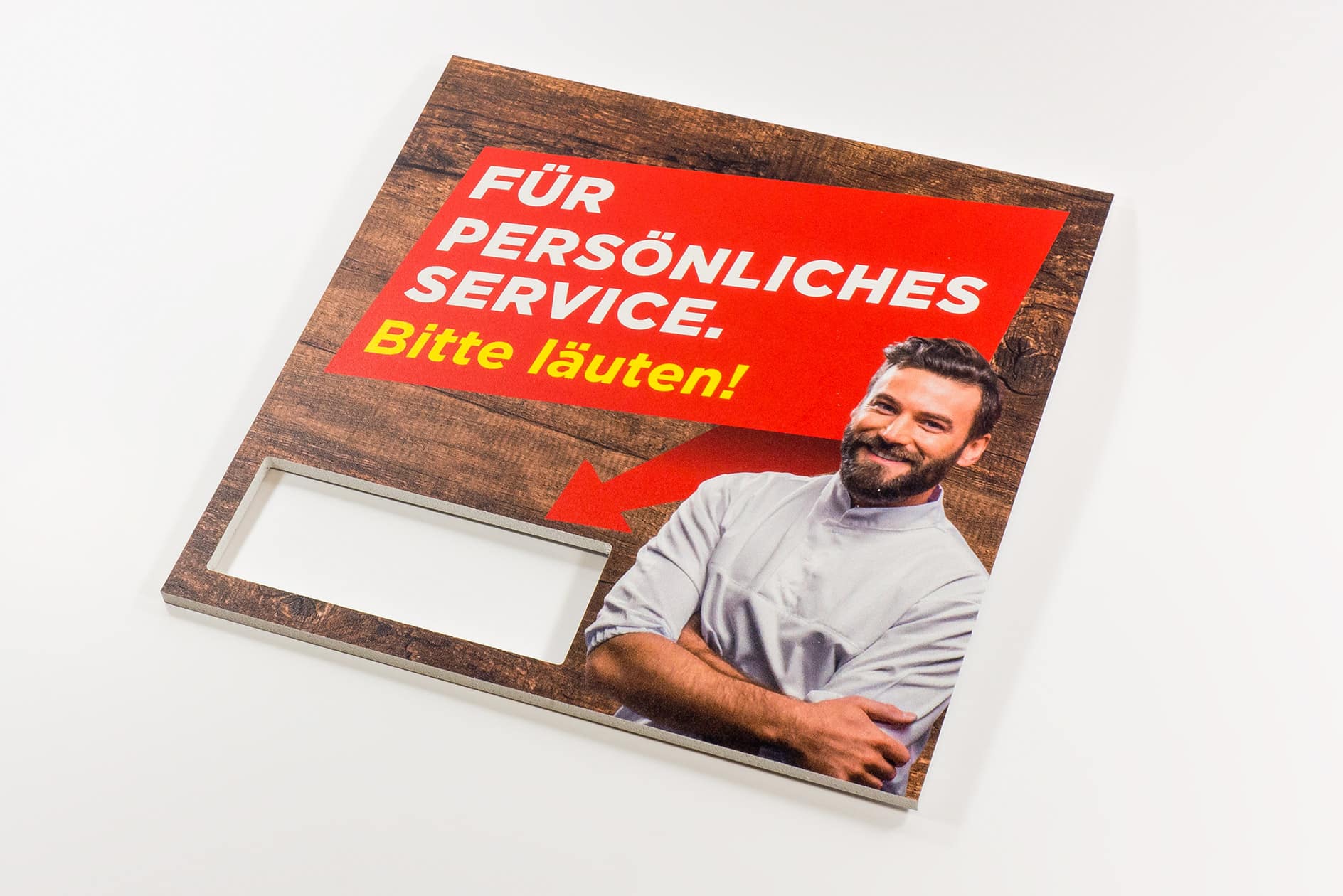 Wir drucken Tafeln und Schilder von ganz klein bis zu mehrere Meter lang, von dünn bis mehrere Zentimeter Stärke.