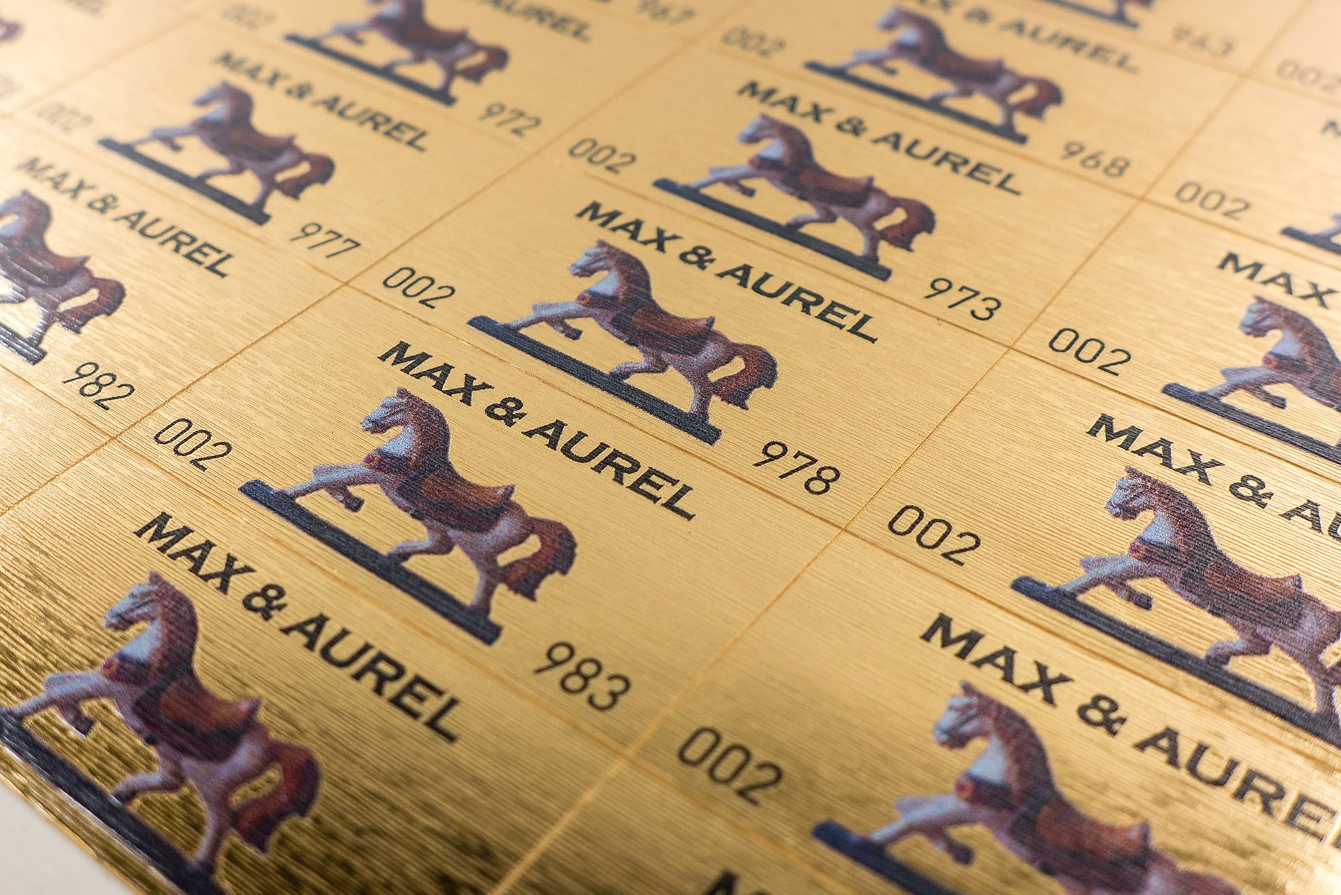 Für exklusive Events wird gerne auch ein personalisierter Fälschungsschutz verwendet, etwa Einladungen mit dem Namen der Person in Echtgold, die zugleich Zutrittskarte für die Veranstaltung darstellen.