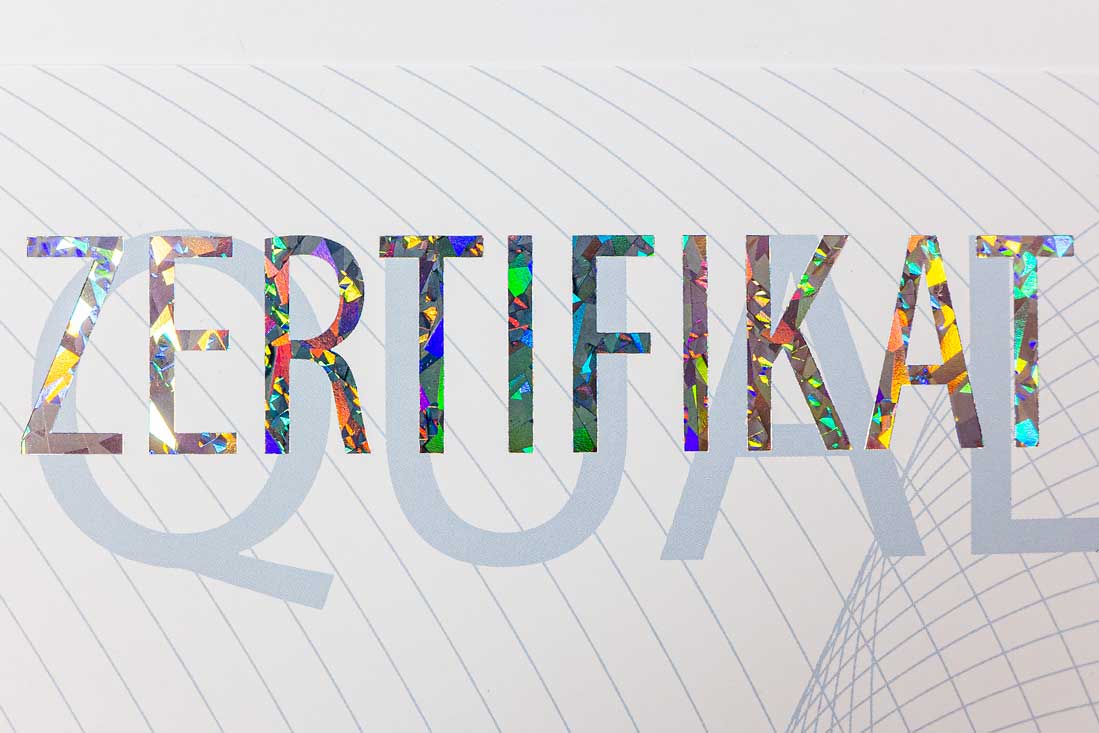 Ein optisch hochwertig gedrucktes Zeugnis zeigt die Hochwertigkeit der beglaubigten Leistung und schafft positive Assoziationen zum Aussteller!