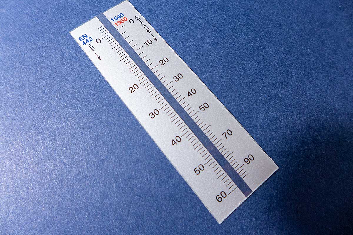 - Meßskalen, Druck auf transparentem Kunststoff, als Einschubteile in Ablesevorrichtungen