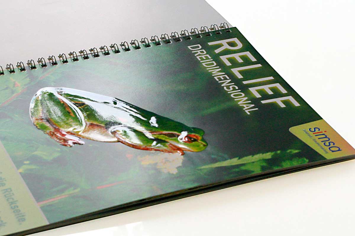 Tastbare und fühlbare Drucke sind besonders reizvoll: Durch die dreidimensionale Prägung gedruckter Bilder können diese noch lebensechter gestaltet werden. So werden etwa die Rinde eines Baumes oder die Noppen eines Basketballs plötzlich greif- und fühlbar.