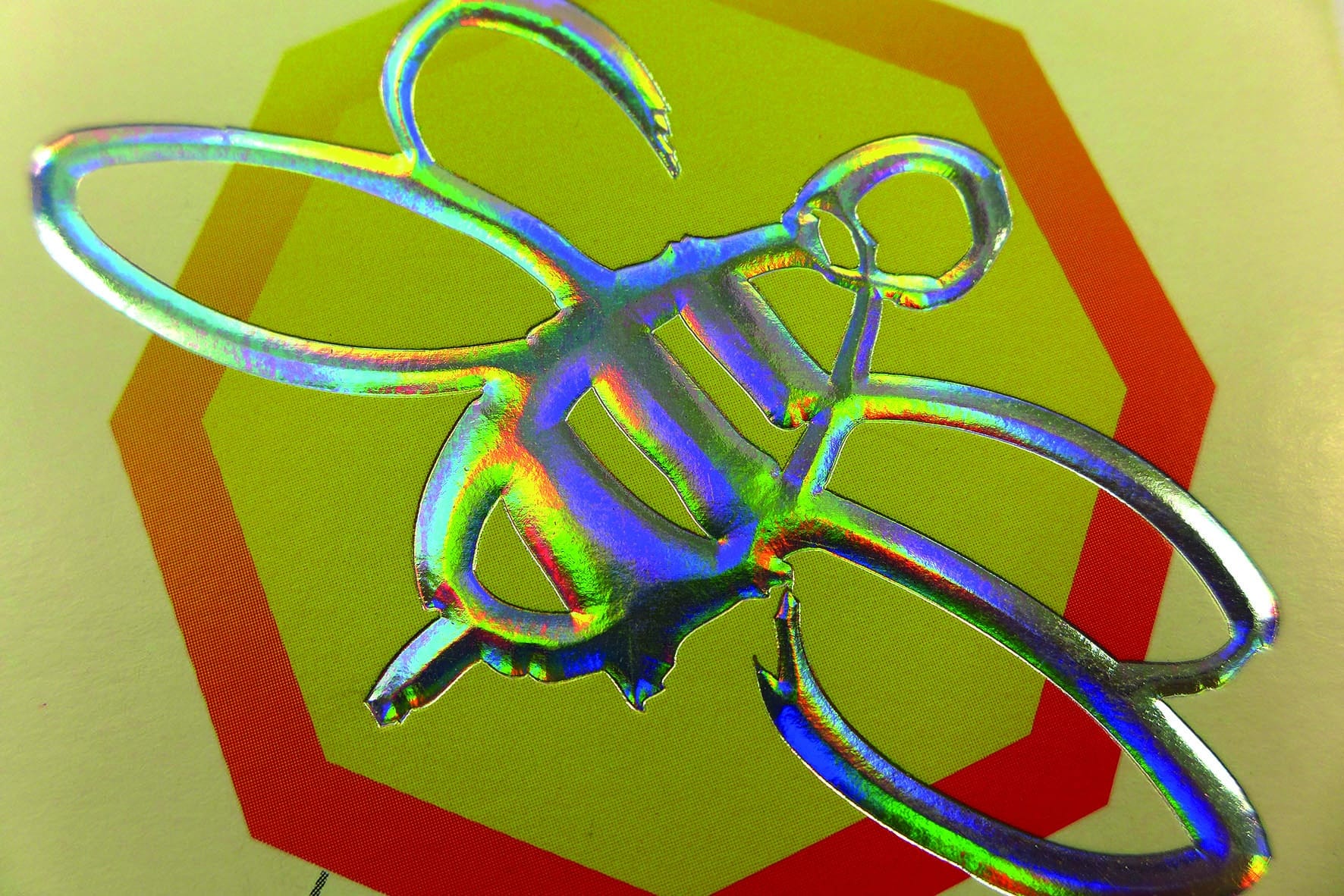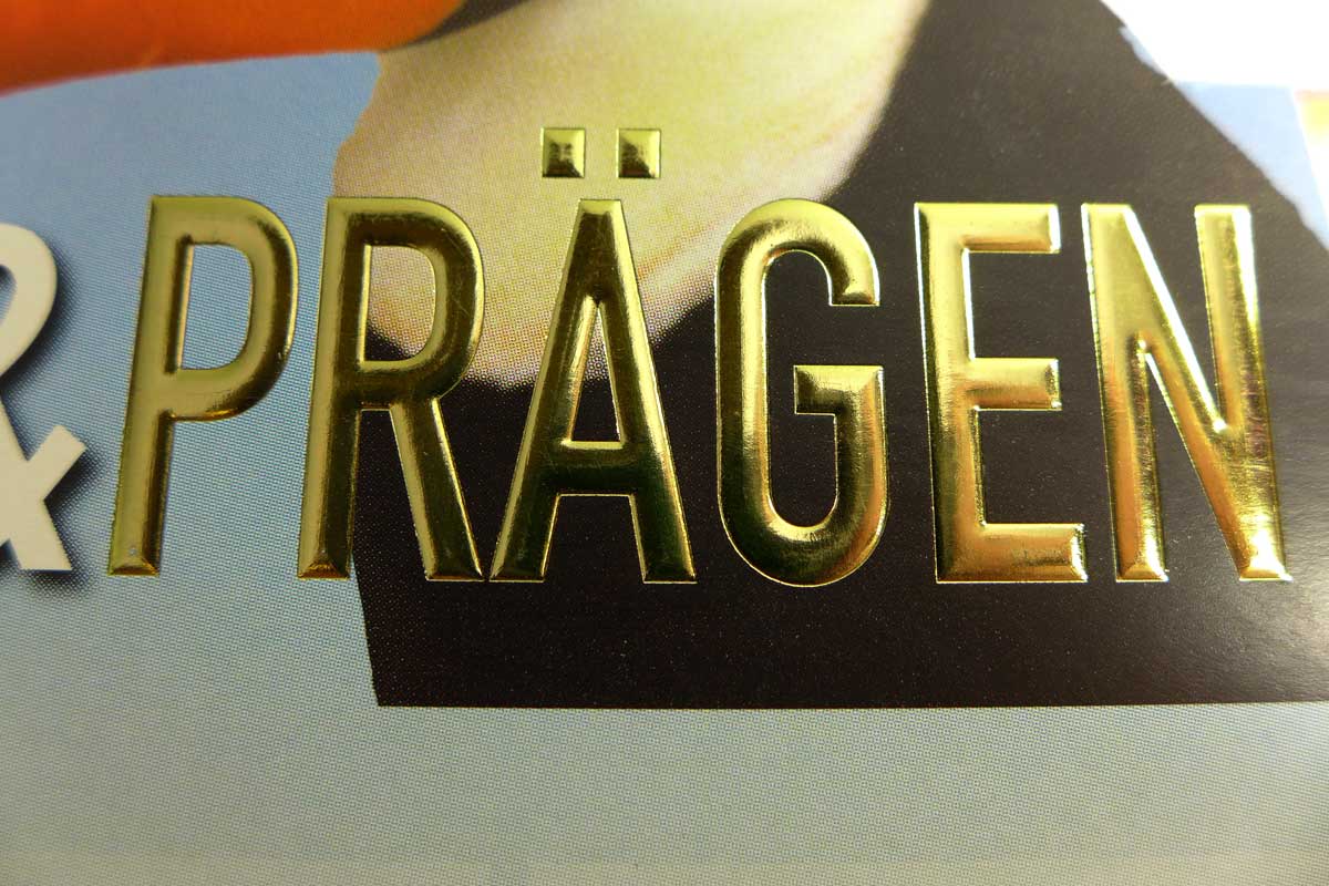 Eine Prägung auf Papier oder Karton lässt sich optisch durch Hinzufügung von Lichtreflektion massiv verstärken. Dafür gibt es zwei Möglichkeiten: