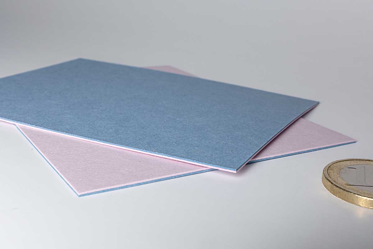 Viele Papiersorten gibt es zudem nur in Grammaturen bis 300g/m², also rund 0,3mm. Was also tun, wenn jemandem das Papier gefällt, er oder sie es aber stärker haben möchte? Viele Leute haben sich schon schweren Herzens ein anderes Material suchen müssen. Das ist jedoch nicht nötig: Gerne können wir 2 Lagen Ihres Wunschpapiers zusammenführen und schon bekommen Sie Ihr Papier in der Stärke eines dicken Kartons oder gar einer massiven Pappe.